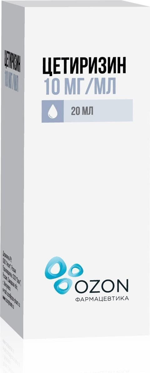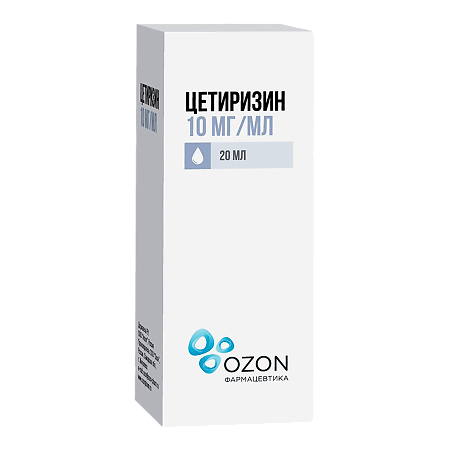 Цетиризина дигидрохлорид, капли для приема внутрь 10 мг/мл, показан у взрослых и детей с 6 месяцев и старше для облегчения: