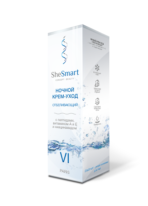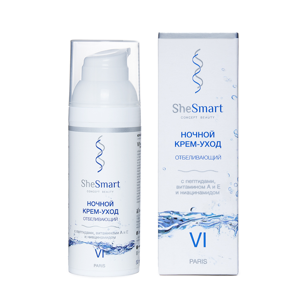 SHESMART КРЕМ-УХОД НОЧНОЙ ОТБЕЛИВАЮЩИЙ С ПЕТИДАМИ ВИТАМИНОМ Е ВИТАМИНОМ А И НИАЦИНАМИДОМ - для ухода за кожей в ночное время.