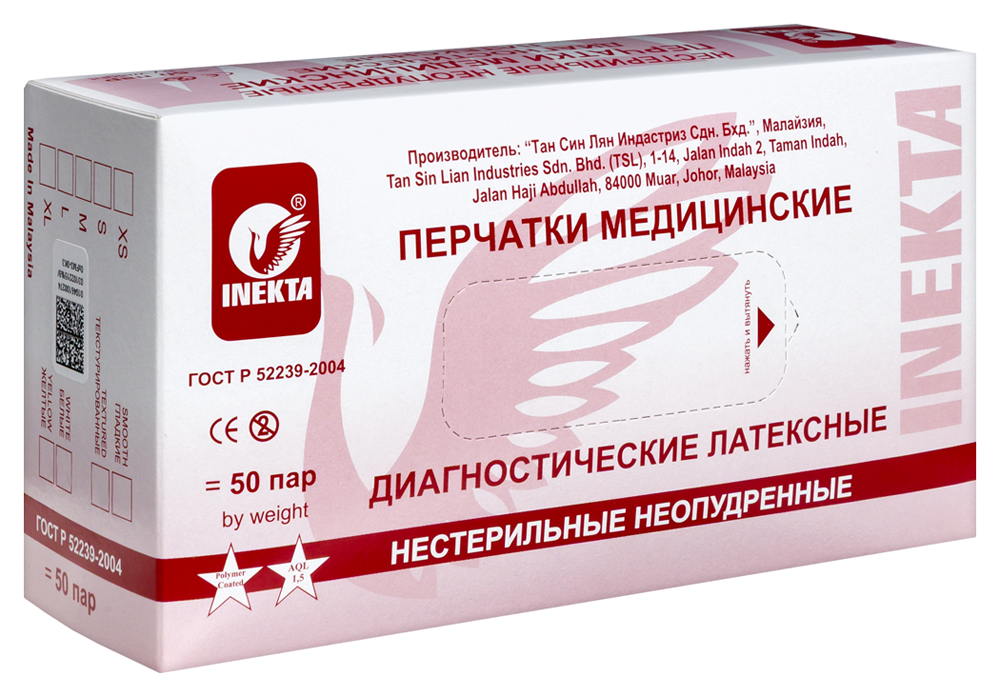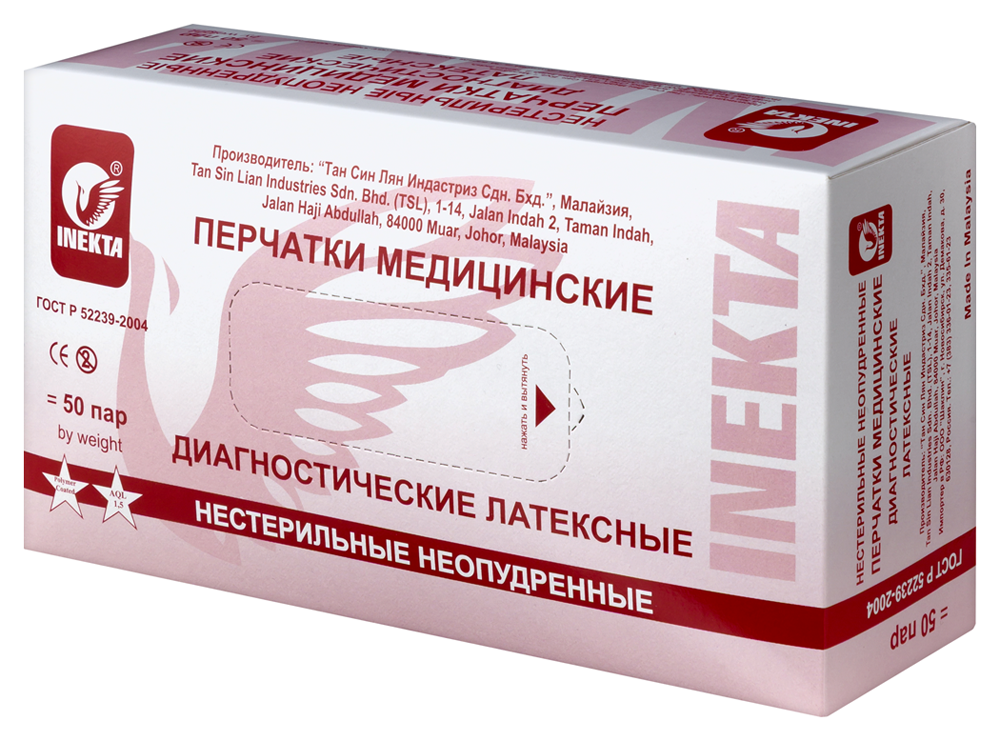 • Диагностические перчатки «INEKTA» полностью соответствуют требованиям российского стандарта ГОСТ Р 52238-2004 и ГОСТ Р 52239-2004.