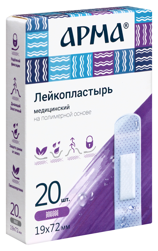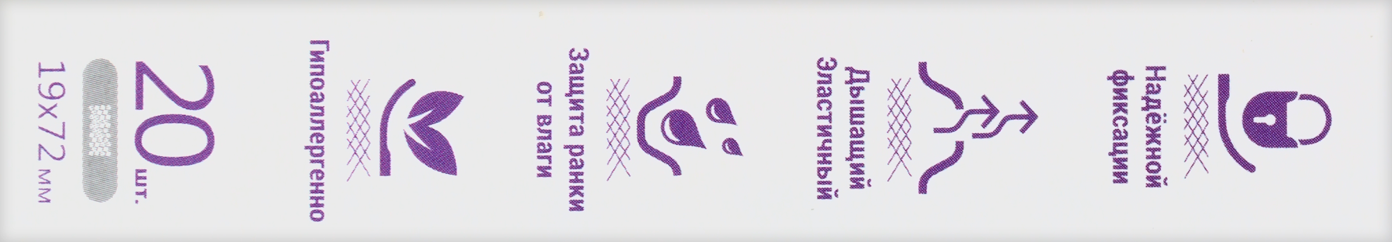 Размеры лейкопластыря: 19х72 мм