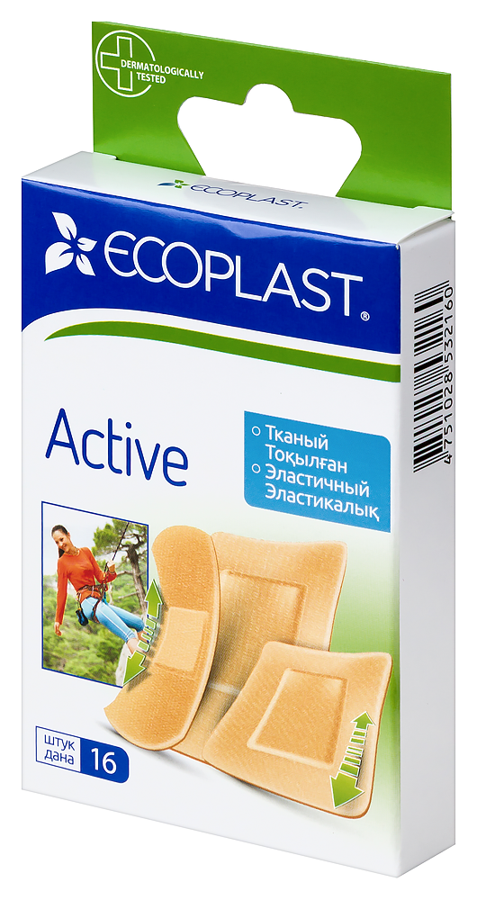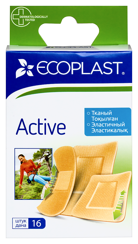 Набор Active состоит из 16 пластырей прямоугольной и квадратной формы в трех размерах (мм):
