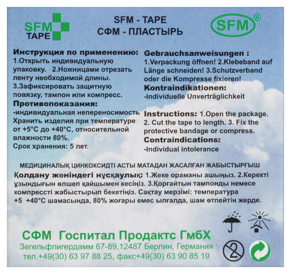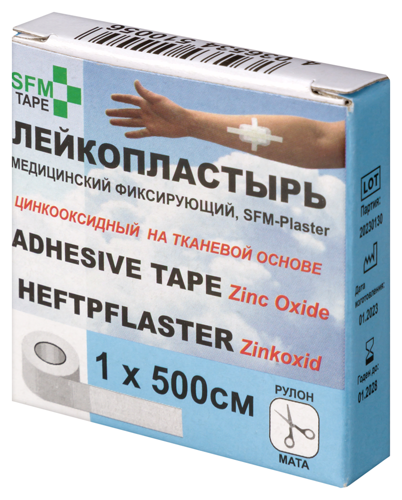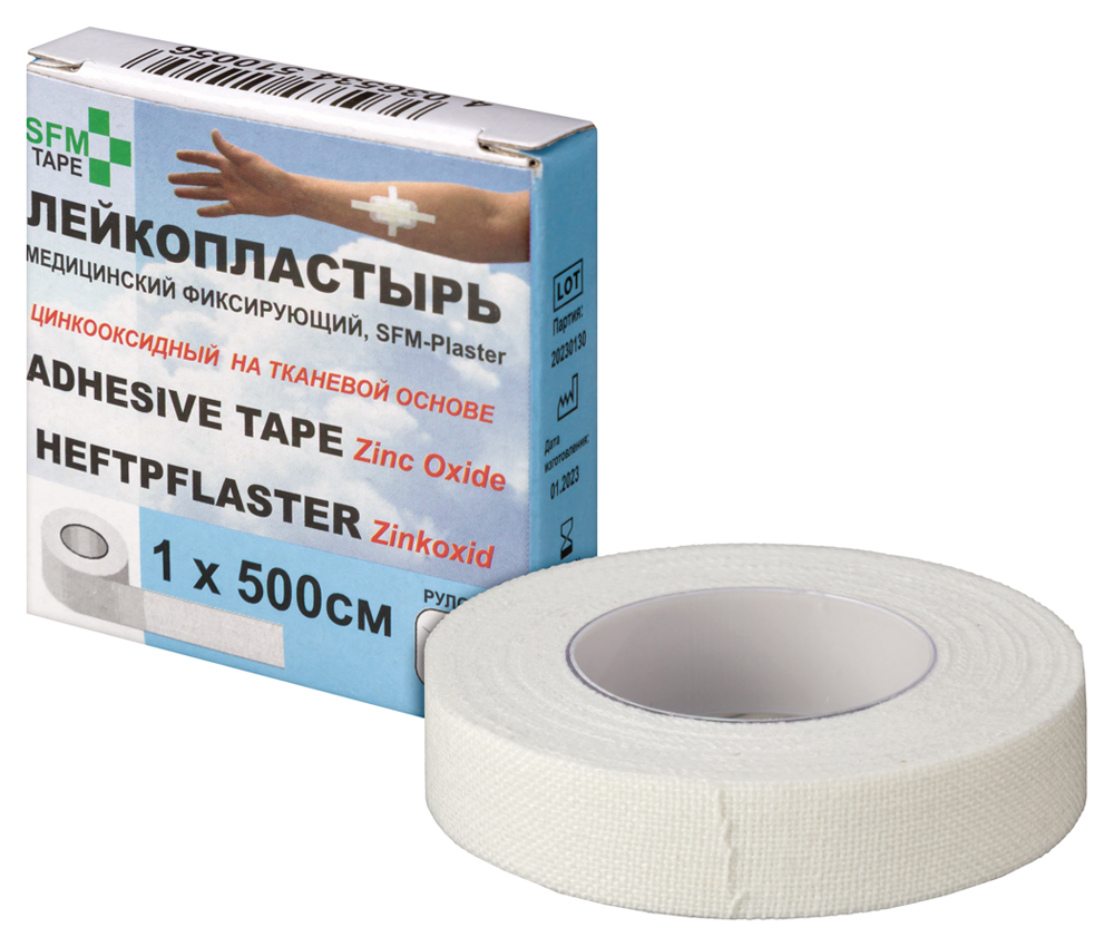 SFM Лейкопластырь фиксирующий медицинский на тканевой основе (хлопковый) гипоаллергенный, универсальный, для нормальной кожи, сильной фиксации, прочный.