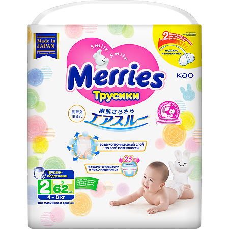 MERRIES Подгузники-трусики от 4 до 8кг (размер S)