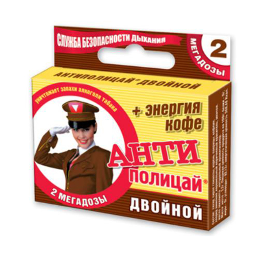Анти-полицай устраняют любой неприятный запах изо рта.Анти-полицай не заглушает неприятные запахи, а совершенно избавляет от них до следующего приема остропахнущего продукта, сигарет, алкоголя.