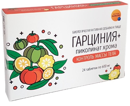 Изготовлена на основе экстракта плодов гарцинии камбоджийской и хрома пиколината с добавлением вспомогательных компонентов предназначена для реализации населению через аптечную сеть и специализированные магазины, отделы торговой сети.