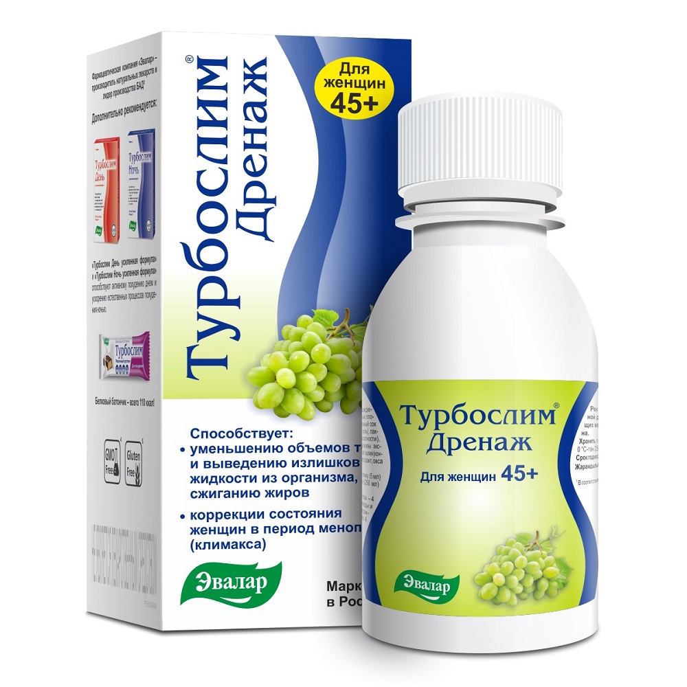 ТУРБОСЛИМ ДРЕНАЖ ДЛЯ ЖЕНЩИН 45+ КОНЦЕНТРАТ - напиток для стройности, созданный с учетом возрастных особенностей женского организма