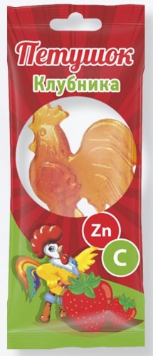 ПЕТУШОК ЛЕДЕНЦОВАЯ КАРАМЕЛЬ С ЦИНКОМ И ВИТАМИНОМ С СО ВКУСОМ КЛУБНИКИ - классическая жженая карамель из сахара и патоки, почти "как готовила бабушка".