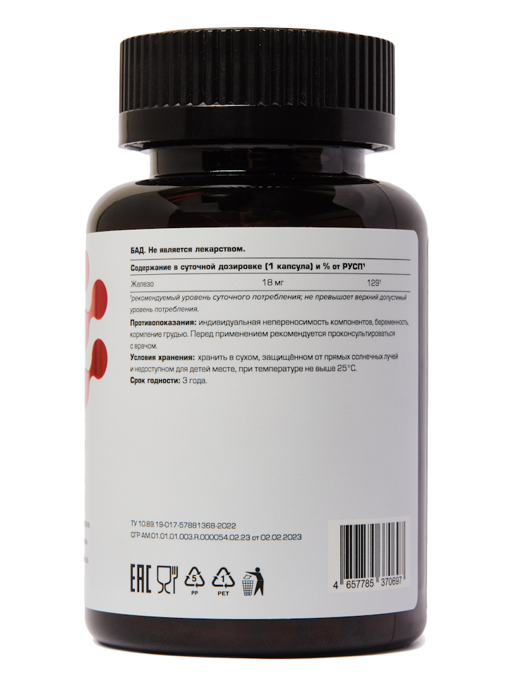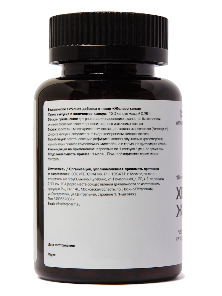Хелатная форма железа, а также оптимальная дозировка обеспечивают качественное усвоение и эффективность применения, что делает ее отличным дополнением к вашей ежедневной рутине. А маленький размер капсулы обеспечивает удобство при приеме продукта.