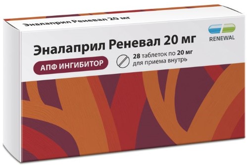 - Способ применения и дозыВнутрь, независимо от приема пищи. Для обеспечения указанных ниже режимов дозирования при необходимости применения эналаприла в дозе 2,5 мг следует назначать препараты эналаприла других производителей в лекарственной форме «таблетки 2,5 мг» или «таблетки 5 мг» с риской. Эссенциальная гипертензия Начальная доза составляет 10-20 мг в зависимости от степени тяжести АГ и применяется 1 раз в сутки. При мягкой степени АГ рекомендуемая начальная доза составляет 10 мг 1 раз в сутки. При других степенях АГ начальная доза составляет 20 мг 1 раз в сутки. Поддерживающая доза - 1 таблетка 20 мг 1 раз в сутки. Дозировка подбирается индивидуально для каждого пациента, но максимальная доза не должна превышать 40 мг в сутки. Реноваскулярная гипертензия Поскольку у пациентов данной группы АД и почечная функция могут быть особенно чувствительны к ингибированию АПФ, терапию начинают с низкой начальной дозы - 5 мг и менее. Затем доза подбирается в соответствии с потребностями и состоянием пациента. Обычно эффективная доза 20 мг препарата Эналаприл Реневал 1 раз в сутки при ежедневном приеме. Следует соблюдать осторожность при применении препарата Эналаприл Реневал у пациентов, которые незадолго до этого принимали диуретики (смотри ниже сопутствующее лечение АГ диуретиками). Сопутствующее лечение АГ диуретиками После первого приема препарата Эналаприл Реневал может развиться симптоматическая артериальная гипотензия. Такой эффект наиболее вероятен у пациентов, которые принимают диуретики. Препарат рекомендуется применять с осторожностью, так как у данных пациентов может наблюдаться нарушение водно-электролитного баланса. Прием диуретиков следует прекратить за 2-3 дня до начала терапии препаратом Эналаприл Реневал. Если это невозможно, то начальную дозу препарата Эналаприл Реневал следует снизить (до 5 мг или менее) для определения первичного эффекта препарата на АД. Далее дозировку следует подбирать с учетом потребности и состояния пациента. Дозировка при почечной недостаточности Должен быть увеличен интервал между приемами препарата Эналаприл Реневал и/или уменьшена доза*. Клиренс креатинина, мл/мин Начальная доза, мг/день < 80 > 30 мл/мин 5-10 мг ? 30 > 10 мл/мин 2,5 мг ? 10 мл/мин 2,5 мг в дни диализа** Смотри разделы «С осторожностью»; «Особые указания». ** Эналаприл подвергается диализу. Коррекция дозы в дни, когда диализ не проводится, должна осуществляться в зависимости от уровня АД. Сердечная недостаточность/бессимптомная дисфункция левого желудочка Начальная доза препарата Эналаприл у пациентов с клинически выраженной СН или с бессимптомной дисфункцией левого желудочка составляет 2,5 мг. При этом применение препарата должно проводиться под тщательным врачебным контролем для определения первичного эффекта препарата на АД. Препарат Эналаприл Реневал может применяться для лечения СН с выраженными клиническими проявлениями обычно совместно с диуретиками и, когда необходимо, с сердечными гликозидами. В случае отсутствия симптоматической артериальной гипотензии (возникшей в результате лечения препаратом Эналаприл Реневал) или после ее коррекции дозу препарата следует постепенно повышать до обычной поддерживающей дозы 20 мг, которая применяется либо однократно, либо делится на 2 приема в зависимости от переносимости препар