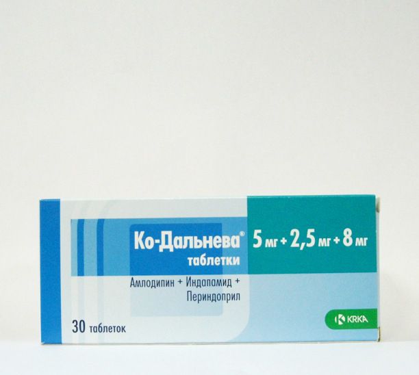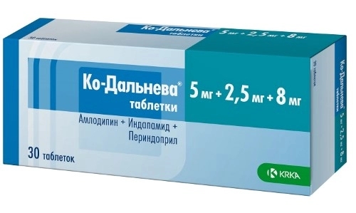 Максимальная суточная доза препарата Ко-Дальнева® составляет 10 мг амлодипина + 2,5 мг индапамида + 8 мг периндоприла.