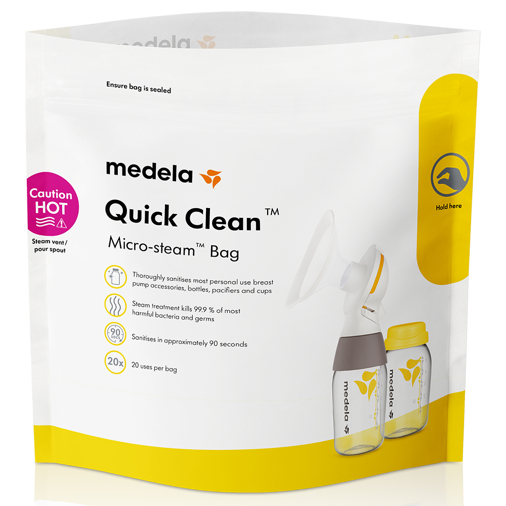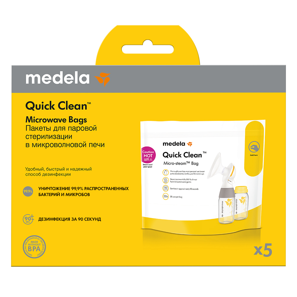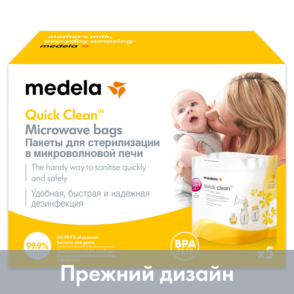 Надежно, быстро и практично: с пакетами Medela Quick Clean Вы сможете дезинфицировать аксессуары для кормления грудью всего за три минуты - это проще и быстрее, чем кипятить. Такой способ уничтожает 99,9 % наиболее опасных бактерий и микробов - также, как и при кипячении. Но стерилизация паром более деликатная и щадящая по отношению к принадлежностям для сцеживания и кормления