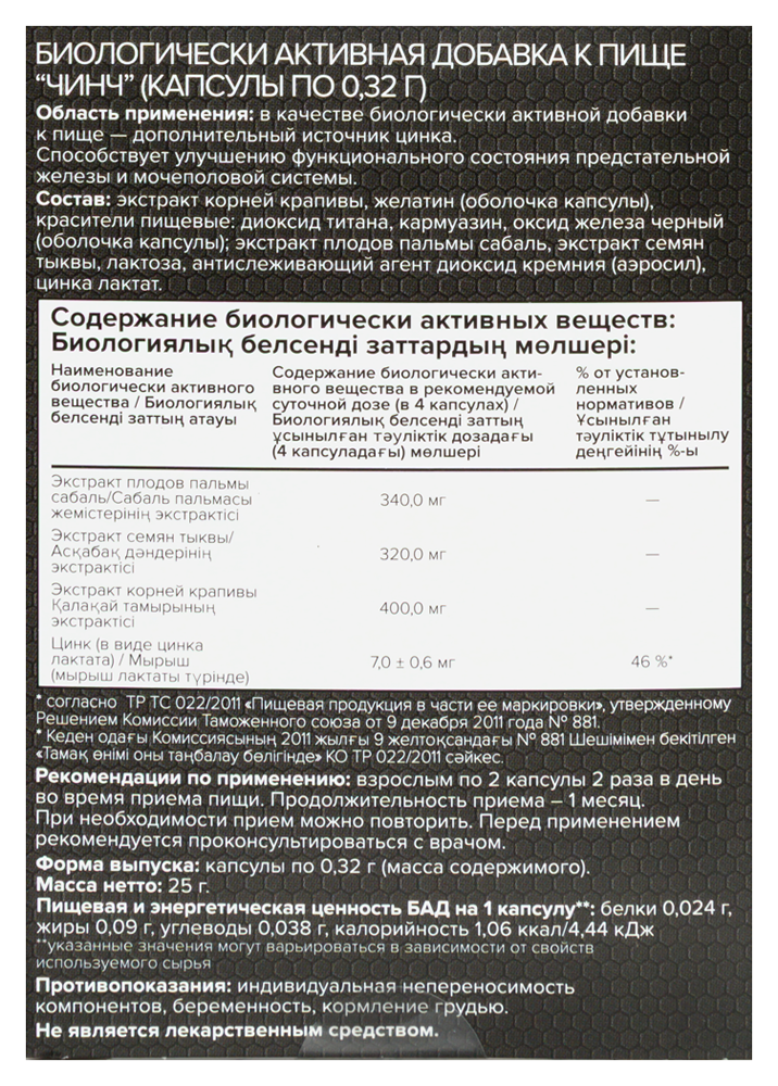 Цинк 7,0±0,6 мг
