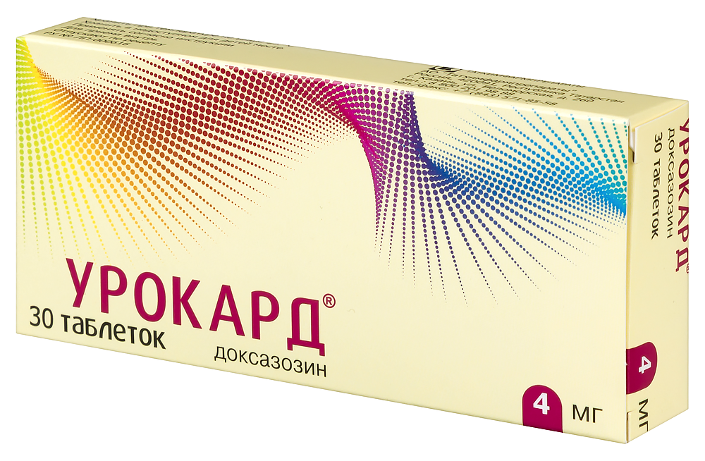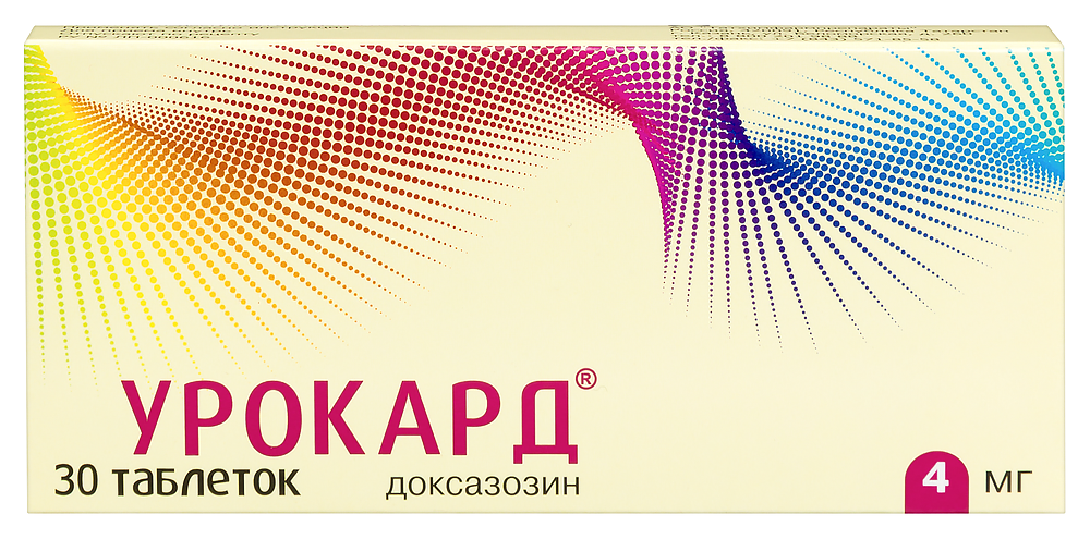 - Способ применения и дозыПрепарат Урокард® может назначаться как утром, так и вечером, и предназначен для приема внутрь. Доброкачественная гиперплазия предстательной железы Рекомендуемая начальная доза препарата Урокард® составляет 1 мг (1/2 таблетки по 2 мг) 1 раз в сутки для того, чтобы свести к минимуму возможность развития постуральной гипотензии и/или синкопального состояния (обморок). В зависимости от индивидуальных показателей уродинамики и наличия симптомов ДГПЖ дозу можно увеличить до 2 мг, затем до 4 мг и до максимальной рекомендуемой дозы 8 мг. Рекомендуемый интервал для повышения дозы составляет 1-2 недели. Обычно рекомендуемая поддерживающая доза равна 2-4 мг 1 раз в сутки. Артериальная гипертензия Дозировка варьирует от 1 до 16 мг в сутки. Лечение рекомендуется начинать с начальной дозы препарата Урокард® 1 мг (1/2 таблетки по 2 мг) 1 раз в сутки в течение 1 или 2 недель для того, чтобы свести к минимуму возможность развития постуральной гипотензии и/или синкопального состояния (обморок) (феномен «первой дозы»). После приема первой дозы пациенту необходимо мониторирование АД в течение 6-8 часов. Это требуется в связи с возможностью развития феномена «первой дозы», особенно выраженной на фоне предшествующего приема диуретиков. В течение последующих 1-2 недель суточную дозу можно увеличить до 2 мг 1 раз в сутки. Для достижения желаемого снижения АД, если необходимо, суточную дозу следует увели-чивать постепенно, соблюдая равномерные интервалы до 4 мг, 8 мг и до максимальной - 16 мг в зависимости от выраженности реакции пациента на прием препарата. Обычно доза составляет 2-4 мг 1 раз в сутки. Если к терапии добавляется диуретик или другое гипотензивное средство необходимо корректировать дозу доксазозина в зависимости от состояния пациента с дальнейшим ее титрованием под контролем врача. В случае если терапия доксазозином была прервана на несколько дней, возобновлять при-менение препарата следует с начальной дозы. Особые группы пациентов Пациенты пожилого возраста Коррекция дозы не требуется. Пациенты с нарушением функции почек Фармакокинетика доксазозина у пациентов с почечной недостаточностью не меняется, а сам препарат не ухудшает имеющуюся почечную дисфункцию, поэтому у таких пациентов его применяют в обычных дозах. Пациенты с нарушением функции печени Необходимо соблюдать осторожность (см. раздел «Особые указания»). Клинических данных о применении доксазозина у пациентов с тяжелыми нарушениями функции печени недостаточно (см. раздел «Противопоказания»).