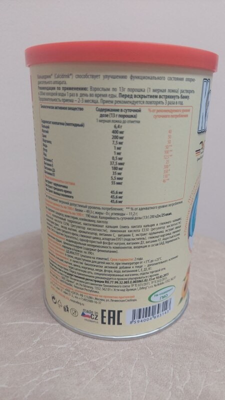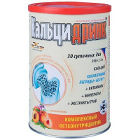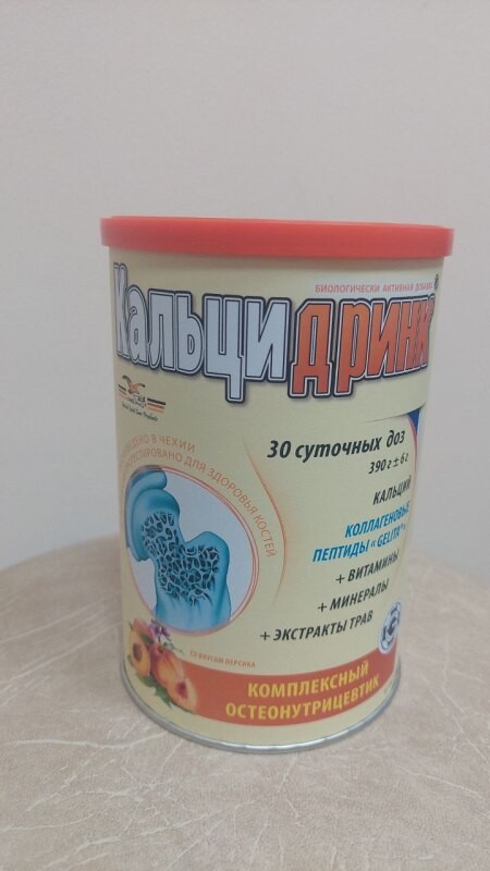- Кальцидринк порошок со вкусом персика 390 г в банке.