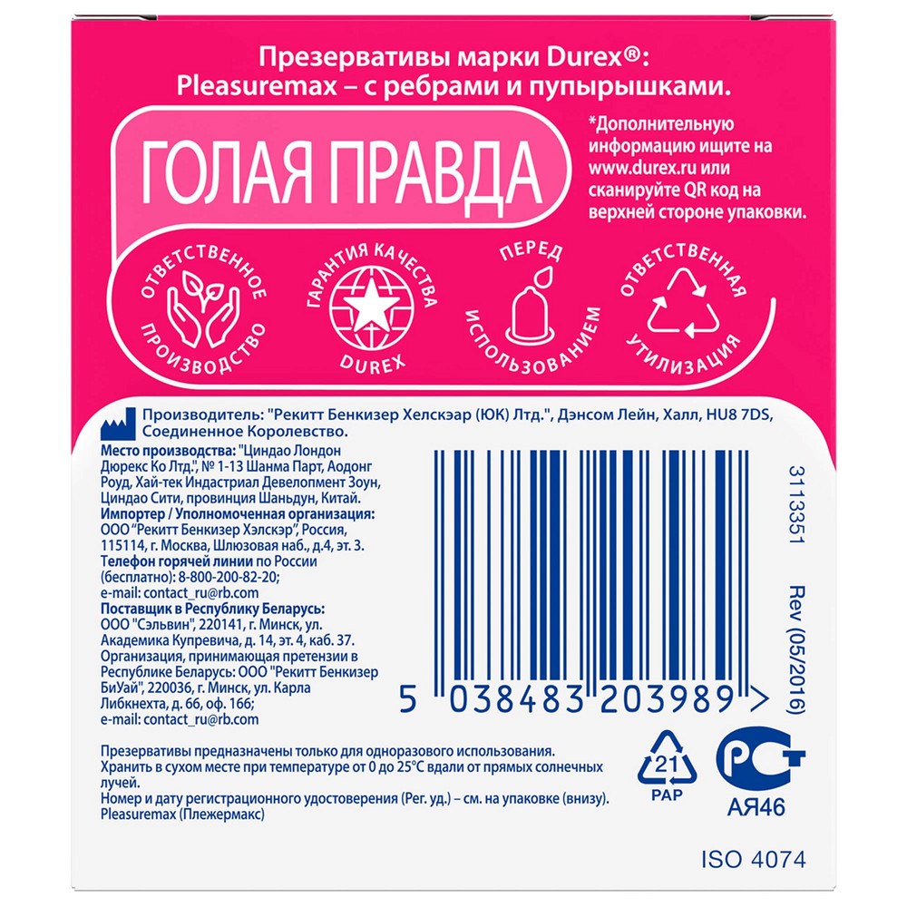 Все презервативы DUREX проходят электронный контроль и предназначены для одноразового использования.
