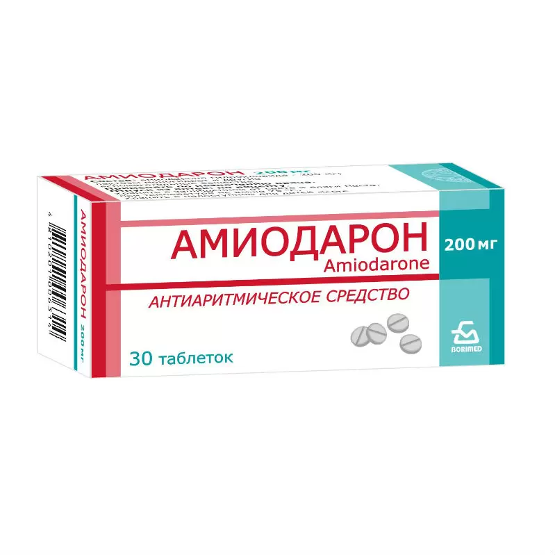 Метаболизируется в печени; основной метаболит – дезэтиламиодарон, обладающий сходными фармакологическими свойствами, может усиливать антиаритмический эффект основного соединения. Возможно, метаболизируется также путем дейодирования (при дозе 300 мг выделяется примерно 9 мг элементарного йода). При продолжительном лечении концентрации йода могут достигать 60-80% концентрации амиодарона. Является переносчиком органических анионов, ингибитором Р-гликопротеина и изоферментов CYP2C9, CYP2D6 и CYP3A4, CYP3A5, CYP3A7, CYP1AI, CYP1A2. CYP2C19, CYP2A6, CYP2B6, CYP2C8 в печени.