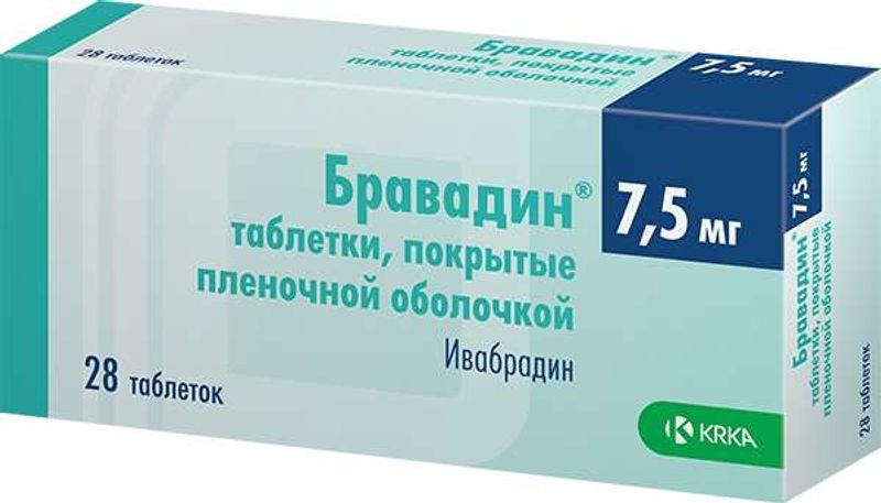 После двух недель применения суточная доза препарата Бравадин может быть увеличена до 15 мг (по 1 таблетке 7,5 мг два раза в сутки), если ЧСС в состоянии покоя стабильно более 60 уд/мин. В случае если ЧСС стабильно ниже 50 уд/мин или в случае проявления симптомов брадикардии, таких как головокружение, повышенная утомляемость или артериальная гипотензия, доза может быть уменьшена до 2,5 мг (½ таблетки 5 мг) два раза в сутки.