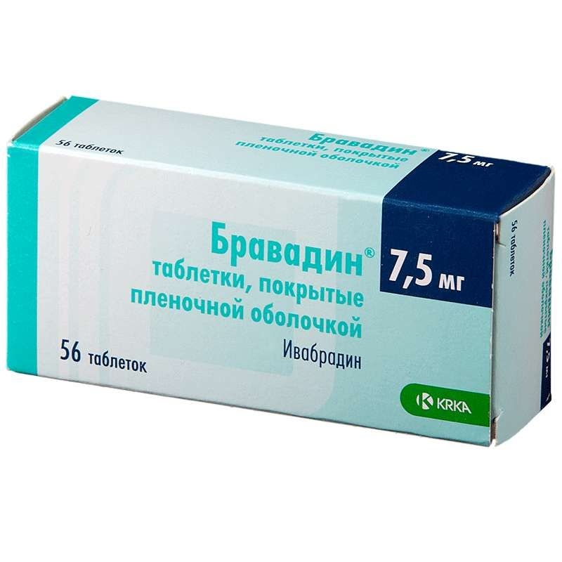После двух недель применения суточная доза препарата Бравадин может быть увеличена до 15 мг (по 1 таблетке 7,5 мг два раза в сутки), если ЧСС в состоянии покоя стабильно более 60 уд/мин. В случае если ЧСС стабильно ниже 50 уд/мин или в случае проявления симптомов брадикардии, таких как головокружение, повышенная утомляемость или артериальная гипотензия, доза может быть уменьшена до 2,5 мг (½ таблетки 5 мг) два раза в сутки.