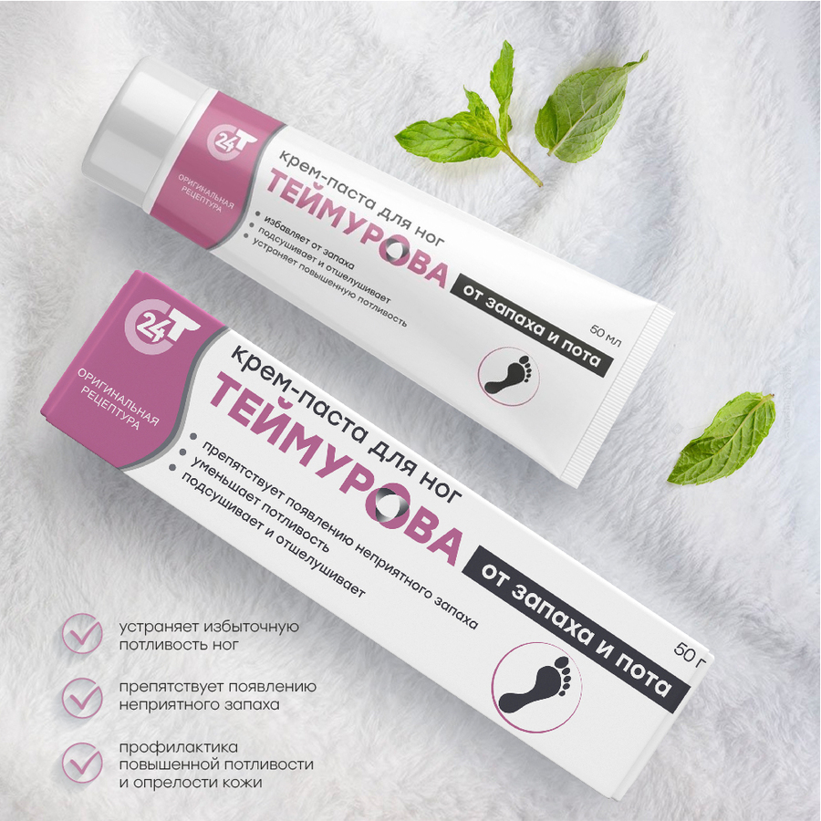 Комплекс активных компонентов крем-пасты оказывает подсушивающее, отшелушивающее и мягкое дезодорирующее действие, эффективно борется с повышенной потливостью и опрелостью кожи ног.