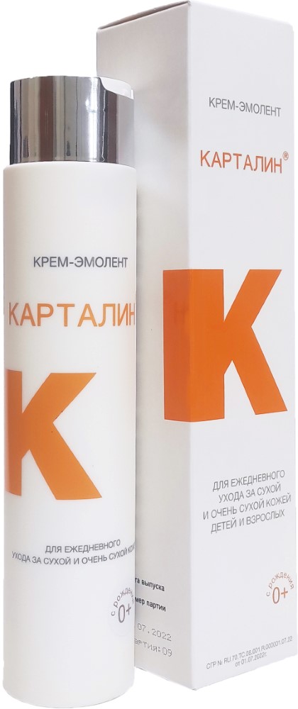 Крем-эмолент «Карталин» с легкой текстурой на основе сквалана предназначен для ежедневного ухода за сухой и очень сухой кожей путем создания невесомой защитной пленки на поверхности кожи и насыщения глубоких слоев кожи влагой, устранения сухости и шелушения кожи.