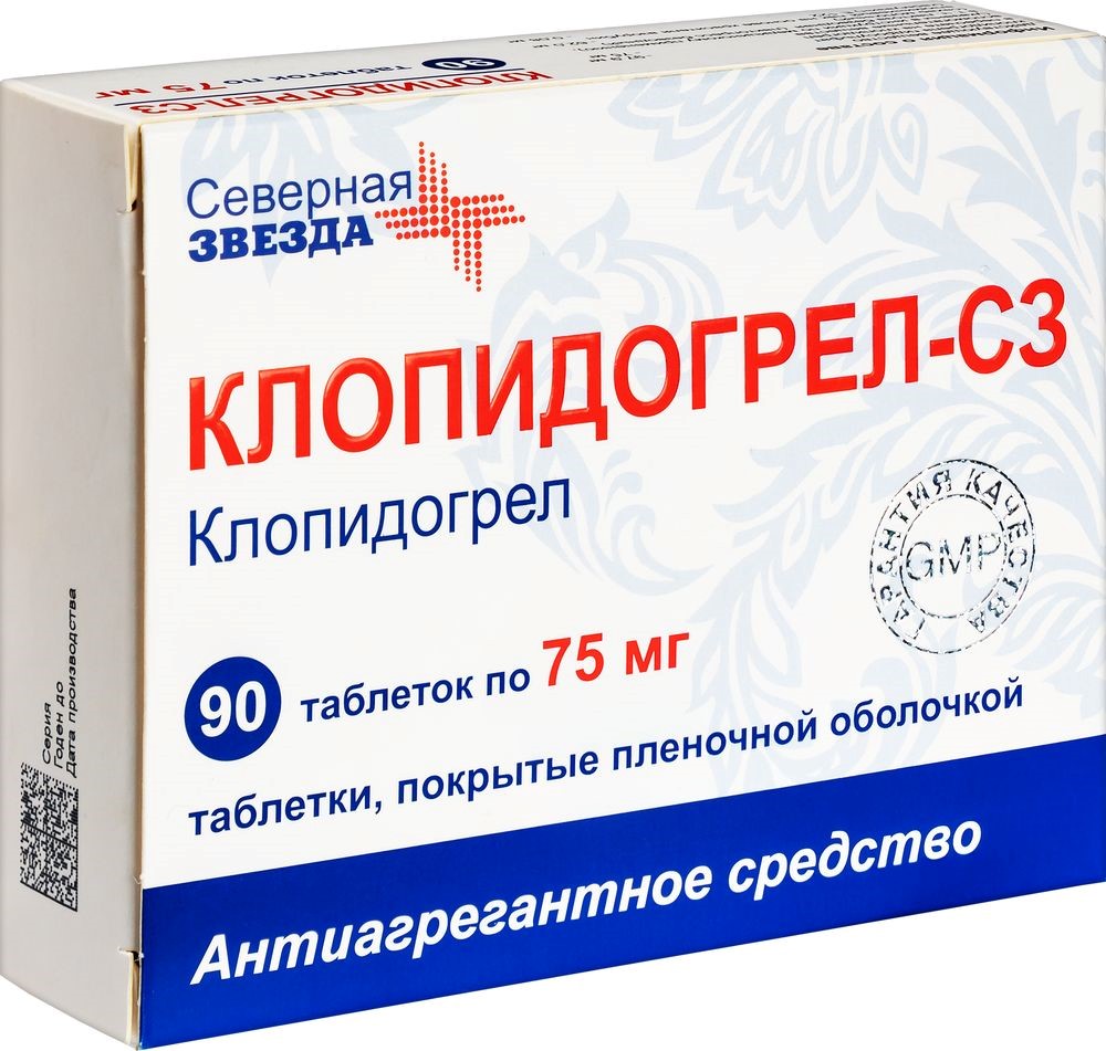 - Способ применения и дозыКлопидогрел-СЗ следует принимать внутрь, независимо от приема пищи. Взрослые и пациенты пожилого возраста с нормальной активностью изофермента CYP2C19 Инфаркт миокарда, ишемический инсульт и диагностированная окклюзионная болезнь периферических артерий Препарат Клопидогрел-СЗ принимается в дозе 75 мг (1 таблетка) один раз в сутки. Острый коронарный синдром без подъема сегмента ST (нестабильная стенокардия, инфаркт миокарда без зубца Q) Лечение препаратом Клопидогрел-СЗ должно быть начато с однократного приема нагрузочной дозы, составляющей 300 мг, а затем продолжено приемом дозы 75 мг один раз в сутки (в сочетании с ацетилсалициловой кислотой в качестве антиагрегантного средства в дозах 75-325 мг в сутки). Поскольку применение более высоких доз ацетилсалициловой кислоты связано с увеличением риска кровотечений, рекомендуемая при этом показании доза ацетилсалициловой кислоты не должна превышать 100 мг. Оптимальная продолжительность лечения официально не определена. Данные клинических исследований поддерживают прием препарата до 12 месяцев, а максимальный терапевтический эффект наблюдается к третьему месяцу лечения. Острый коронарный синдром с подъемом сегмента ST (острый инфаркт миокарда с подъемом сегмента ST) Препарат Клопидогрел-СЗ следует принимать однократно в сутки в дозе 75 мг с первоначальным однократным приемом нагрузочной дозы клопидогрела 300 мг в комбинации с ацетилсалициловой кислотой в сочетании с тромболитиками или без сочетания с тромболитиками. У пациентов старше 75 лет лечение клопидогрелом должно начинаться без приема его нагрузочной дозы. Комбинированную терапию начинают как можно раньше после появления симптомов, и продолжают в течение, по крайней мере, четырех недель. Эффективность применения комбинации клопидогрела и ацетилсалициловой кислоты при этом показании свыше 4-х недель не изучалась. Фибрилляция предсердий (мерцательная аритмия) Препарат Клопидогрел-СЗ назначают в дозе 75 мг 1 раз в сутки. В комбинации с клопидогрелом следует начать терапию и затем продолжить прием ацетилсалициловой кислоты в дозе 75-100 мг в сутки. Пропуск приема очередной дозы. Если прошло менее 12 часов после пропуска приема очередной дозы, то следует немедленно принять пропущенную дозу препарата, а затем следующую дозу принимать в обычное время. Если прошло более 12 часов после пропуска приема очередной дозы, то пациент должен принять следующую дозу в обычное время (не следует принимать двойную дозу). Пациенты с генетически обусловленным снижением функции изофермента CYP2CJ9 Низкая активность изофермента CYP2C19 ассоциируется с уменьшением антиагрегантного действия клопидогрела. Режим применения более высоких доз (600 мг - нагрузочная доза, затем 150 мг один раз в сутки ежедневно) у пациентов с низкой активностью изофермента CYP2C19 приводит к усилению антиагрегантного действия клопидогрела (см. раздел «Фармакокинетика»). Однако в клинических исследованиях по изучению клинических исходов не установлен оптимальный режим дозирования клопидогрела у пациентов со сниженным метаболизмом вследствие генетически обусловленной низкой активности изофермента CYP2C19. Особые группы пациентов Пациенты пожилого возраста У добровольцев пожилого возраста (старше 75 лет) при сравнении с молодыми добровольцами различий п