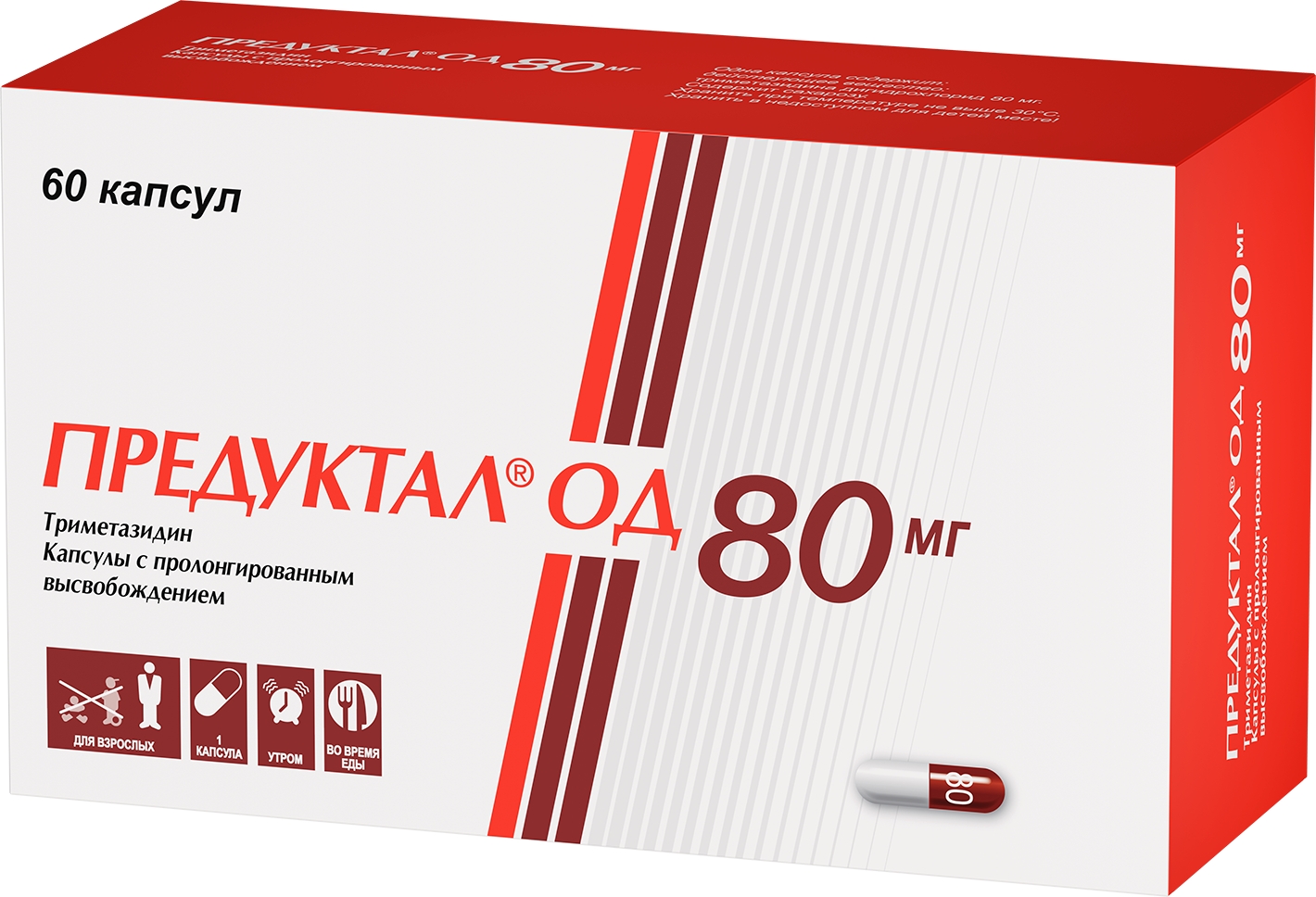 Лекарственный препарат Предуктал® ОД предназначен для применения у взрослых пациентов в комбинации с другими лекарственными препаратами для лечения стенокардии (боли в груди, вызванной ишемической болезнью сердца).