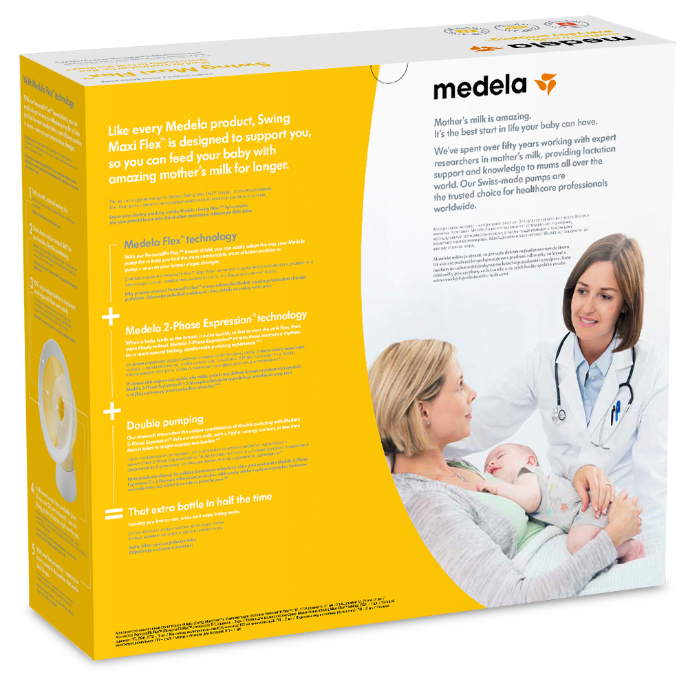 MEDELA МОЛОКООТСОС SWING MAXI FLEX ЭЛЕКТРОННЫЙ - портативный двойной двухфазный молокоотсос Medela инновационной конструкции для более оптимального и комфортного сцеживания.