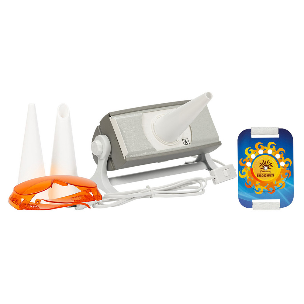 Имеет пластмассовый корпус, комплектуется биодозиметром Горбачева для определения индивидуальной биодозы с учетом физиологических особенностей пациента.