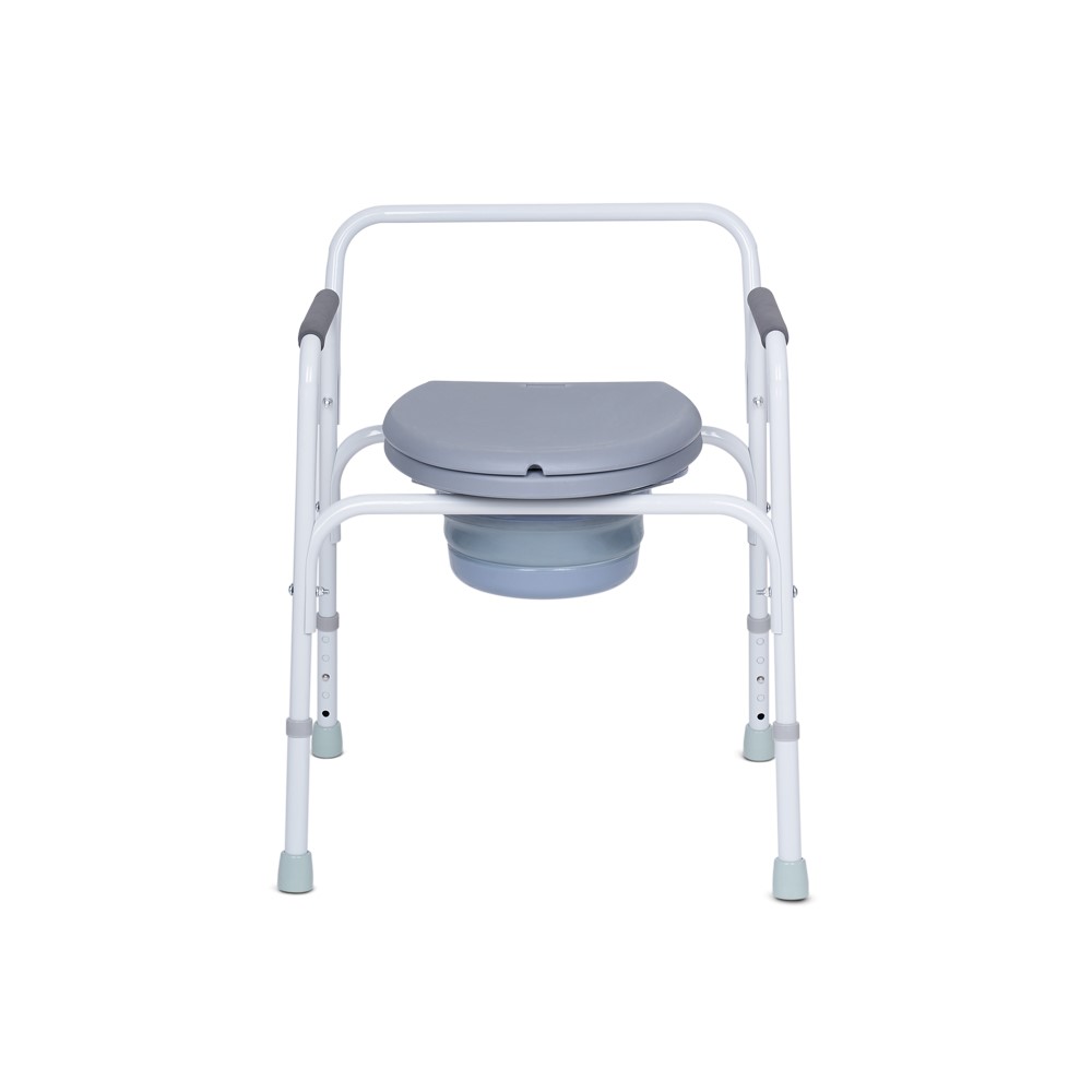 Стул можно использовать автономно для санитарно-гигиенических нужд, а также в туалете путем установки изделия над унитазом. Для устойчивого положения предусмотрены резиновые наконечники.