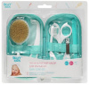 В наборе есть все необходимое для ухода за малышом: щётка для волос с натуральной щетиной, расчёска, маникюрные ножницы, щипчики для ногтей, 5 пилочек, зубная щётка.