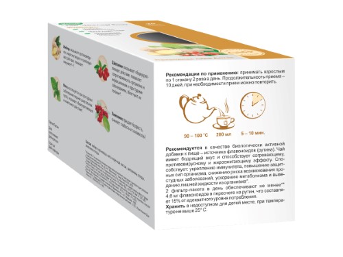 не менее 4,6 мг флавоноидов в пересчете на рутин, что составляет 15% от адекватного уровня потребления.