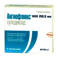 - Не следует назначать Ангиофлюкс пациентам с гиперчувствительностью к гепарину и препаратам сходного типа, поскольку молекулярное строение сулодексида подобно строению гепарина.