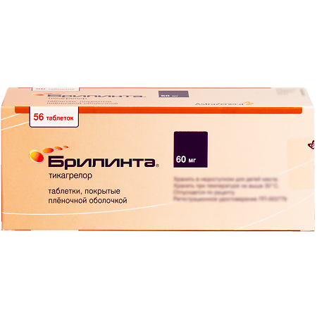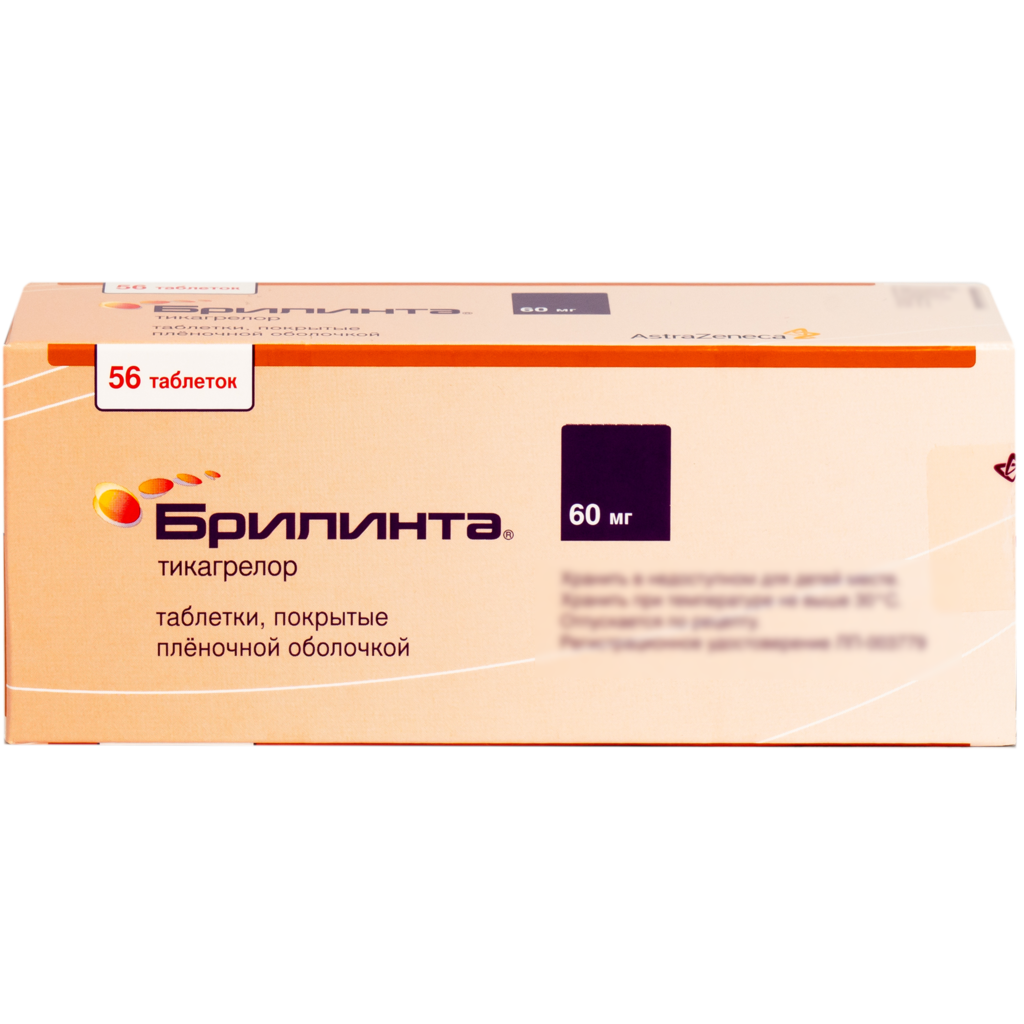 Действующее вещество: тикагрелор 60 мг