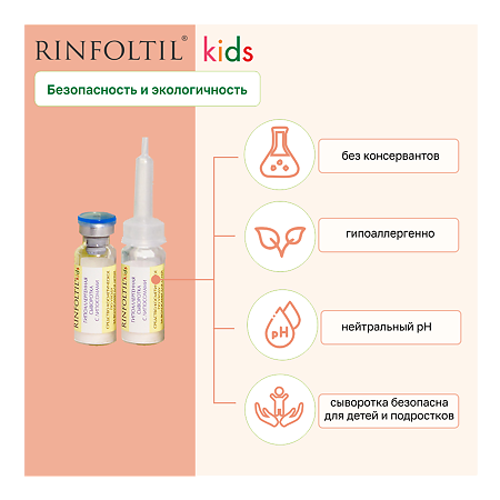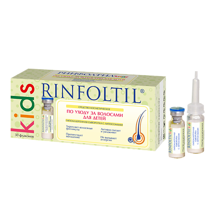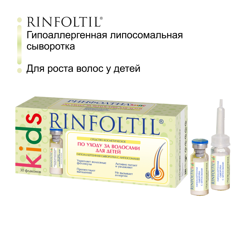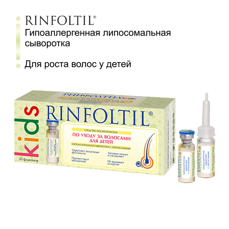 - Гипоаллергенная сыворотка с липосомами RINFOLTIL® kids создана специально для детей и подростков на основе научных разработок, ее действие направлено на предотвращение выпадения волос и возобновление их роста.