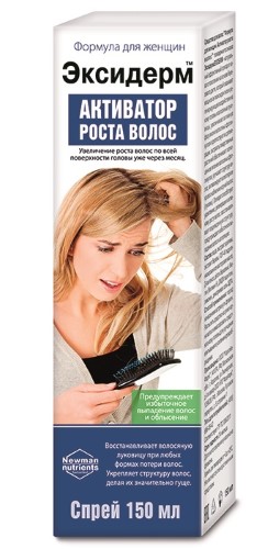 Высокая эффективность средства Эксидерм определяется комплексным характером действия его компонентов. Активные вещества проникают через эпидермис в подкожную капиллярную сеть, обеспечивая волосяные луковицы питательными веществами, стимулируют и нормализуют белковый обмен волосяных фолликулов, активизируют метаболизм в корнях волос и возвращают волосам здоровый блеск.