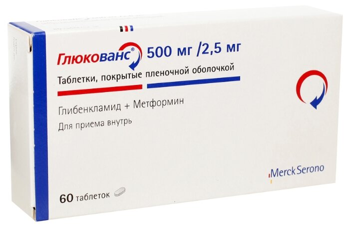 Активные компоненты: глибенкламид - 2.5 мг, метформина гидрохлорид - 500 мг.