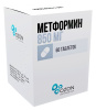 - ПротивопоказанияПовышенная чувствительность к метформину или к любому вспомогательному веществу препарата; диабетический кетоацидоз, диабетическая прекома, кома; почечная недостаточность или нарушение функции почек (КК менее 30 мл/мин); острые состояния, протекающие с риском развития нарушения функции почек: дегидратация (при диарее, рвоте), тяжелые инфекционные заболевания, шок; клинически выраженные проявления острых или хронических заболеваний, которые могут приводить к развитию тканевой гипоксии (в т.ч. острая сердечная недостаточность, хроническая сердечная недостаточность с нестабильными показателями гемодинамики, дыхательная недостаточность, острый инфаркт миокарда); обширные хирургические операции и травмы, когда показано проведение инсулинотерапии (см. раздел "Особые указания"); печеночная недостаточность, нарушение функции печени; хронический алкоголизм, острое отравление алкоголем; беременность; лактоацидоз (в т.ч. и в анамнезе); применение в течение менее 48 ч до и в течение 48 ч после проведения радиоизотопных или рентгенологических исследований с введением йодсодержащего контрастного вещества (см. раздел "Взаимодействие с другими лекарственными средствами"); соблюдение гипокалорийной диеты (менее 1000 ккал/сут); детский возраст до 10 лет. С осторожностью: Применять препарат: у лиц старше 60 лет, выполняющих тяжелую физическую работу, что связано с повышенным риском развития у них лактоацидоза; в период грудного вскармливания; у пациентов с почечной недостаточностью (КК 30-59 мл/мин); в детском возрасте от 10 до 12 лет. Беременность и лактация: Применение метформина в период беременности противопоказано. Декомпенсированный сахарный диабет во время беременности связан с повышенным риском возникновения врожденных пороков и перинатальной смертности. Ограниченное количество данных свидетельствует о том, что прием метформина у беременных женщин не увеличивает риск развития врожденных пороков у детей. При планировании беременности, а также в случае наступления беременности на фоне приема метформина при предиабете и сахарном диабете 2 типа, метформин должен быть отменен, и в случае сахарного диабета 2 типа назначена инсулинотерапия. Необходимо поддерживать концентрацию глюкозы в плазме крови на уровне, наиболее близком к норме для снижения риска возникновения пороков развития плода. Метформин проникает в грудное молоко. Нежелательные реакции у новорожденных при грудном вскармливании на фоне приема метформина не наблюдались. Однако в связи с ограниченным количеством данных, применение метформина в период грудного вскармливания не рекомендовано. Решение о прекращении грудного вскармливания должно быть принято с учетом пользы от грудного вскармливания и потенциального риска возникновения нежелательных реакций у ребенка.