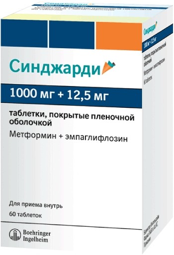 В продолжающихся долгосрочных клинических исследованиях другого ингибитора SGLT2 наблюдалось увеличение частоты ампутаций нижних конечностей (преимущественно пальцев стоп). Неизвестно, присущ ли данный эффект всем представителям класса ингибиторов SGLT2. Пациентам, получающим СИНДЖАРДИ, как и любым другим лицам с сахарным диабетом необходимо рекомендовать постоянный профилактический уход за стопами. - ВзаимодействиеИсследований по лекарственным взаимодействиям препарата СИНДЖАРДИ не проводилось. Однако проводились фармакокинетические исследования по лекарственным взаимодействиям компонентов препарата СИНДЖАРДИ: эмпаглифлозина и метформина.