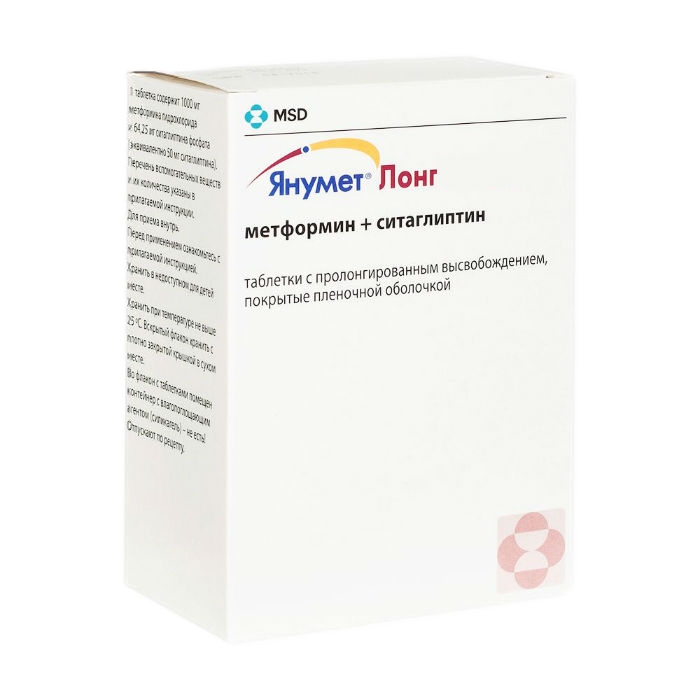 Препарат в форме таблеток с пролонгированным высвобождением производится в дозировках 500 мг+50 мг, 1000 мг+50 мг и 1000 мг+100 мг. Препарат с дозировкой 500 мг+50 мг или 1000 мг+50 мг следует принимать по 2 таблетки одновременно 1 раз/сут; 1000 мг+100 мг - по 1 таблетке 1 раз/сут, во время еды, желательно вечером. Для обеспечения пролонгированного высвобождения метформина перед проглатыванием таблетки ее не следует делить, разламывать, раздавливать или разжевывать. Имеются сообщения об обнаружении не полностью растворенных таблеток в каловых массах. Неизвестно, содержал ли данный материал действующие вещества. Пациента следует предупредить о необходимости сообщать лечащему врачу о случаях неоднократного обнаружения таблеток в каловых массах. При получении таких сообщений лечащий врач должен оценить адекватность гликемического контроля пациента. Таблетки с пролонгированным высвобождением, покрытые пленочной оболочкой.