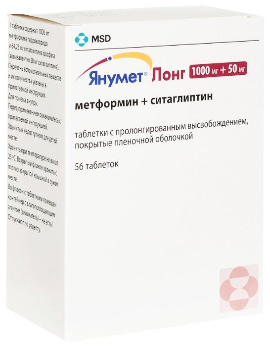 действующие вещества: метформина гидрохлорид 1000,0 мг, ситаглиптина фосфат 64,25 мг (эквивалентно 50 мг ситаглиптина);