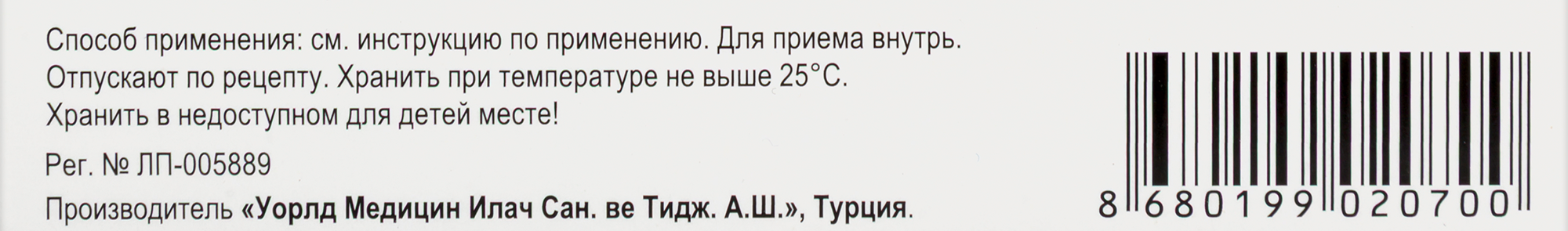 - ПроизводительУорлд Медицин Илач Сан ве Тидж А.Ш.