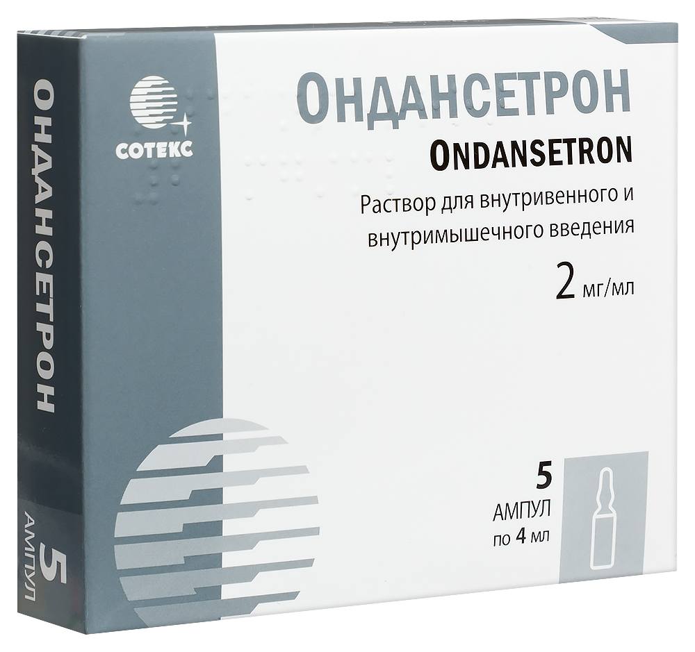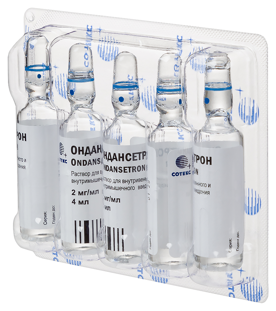 - СоставСостав на одну ампулу 4 мл Действующее вещество: Ондансетрона гидрохлорида дигидрат (в пересчете на ондансетрон основание) 8 мг Вспомогательные вещества: сорбитол, лимонной кислоты моногидрат, натрия цитрата дигидрат, вода для инъекций. Описание: бесцветная или почти бесцветная прозрачная или с легкой опалесценцией жидкость. Свернуть