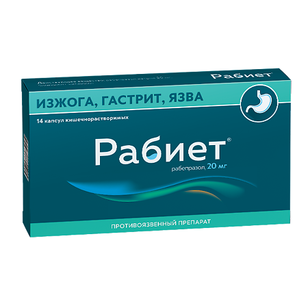 - Особые указанияОтвет пациента на терапию рабепразолом натрия не исключает наличие злокачественных новообразований в желудке. В специальном исследовании у пациентов с легкими или умеренными нарушениями функции печени не было обнаружено значимого отличия частоты побочных эффектов рабепразола от таковой у подобранных по полу и возрасту здоровых лиц, но несмотря на это, рекомендуется соблюдать осторожность при первом назначении препарата рабепразол пациентам с тяжелыми нарушениями функции печени. Пациентам с нарушениями функции почек или печени коррекция дозы рабепразола не требуется. AUC рабепразола натрия у пациентов с тяжелым нарушением функции печени примерно в 2 раза выше, чем у здоровых пациентов. Гипомагниемия При лечении ингибиторами протонной помпы на протяжении, по крайней мере, 3 мес в редких случаях были отмечены случаи симптоматической или асимптоматической гипомагниемии. В большинстве случаев эти сообщении поступали через год после проведения терапии. Серьезными побочными явлениями были тетания, аритмия, судороги. Большинству пациентов требовалось лечение гипомагниемии, включающей замещение магния и отмену ингибиторов протонной помпы. У пациентов, которые будут получать длительное лечение, или принимают ингибиторы протонной помпы с препаратами, такими как дигоксин, или препаратами, которые могут вызвать гипомагниемию (например, диуретики), следует контролировать концентрацию магния до начала лечения ингибиторами протонной помпы и в период лечения. Не следует принимать одновременно с препаратом Рабиет® другие средства, снижающие кислотность, например, блокаторы гистаминовых Н2-рецепторов или ингибиторы протонного насоса. Переломы костей Согласно данным наблюдательных исследований можно предположить, что терапия ингибиторами протонной помпы может привести к возрастанию риска связанных с остеопорозом переломов бедра, запястья или позвоночника. Риск переломов был увеличен у пациентов, получавших ингибиторы протонной помпы в высоких дозах длительно (год и более). Под высокими следует понимать дозы, превышающие рекомендованные в инструкции. Одновременное применение с метотрексатом Согласно литературным данным, одновременное применение ингибиторов протонной помпы с метотрексатом (прежде всего в высоких дозах) может привести к повышению концентрации метотрексата и/или его метаболита гидроксиметотрексата и продлить время его выведения, что может привести к проявлению токсичности метотрексата. При необходимости применения метотрексата в высоких дозах может быть рассмотрена возможность временного прекращения терапии ингибиторами протонной помпы. Clostridium difficile Терапия ингибиторами протонной помпы может приводить к возрастанию риска желудочно-кишечных инфекций, таких как инфекции, вызванные Clostridium difficile.