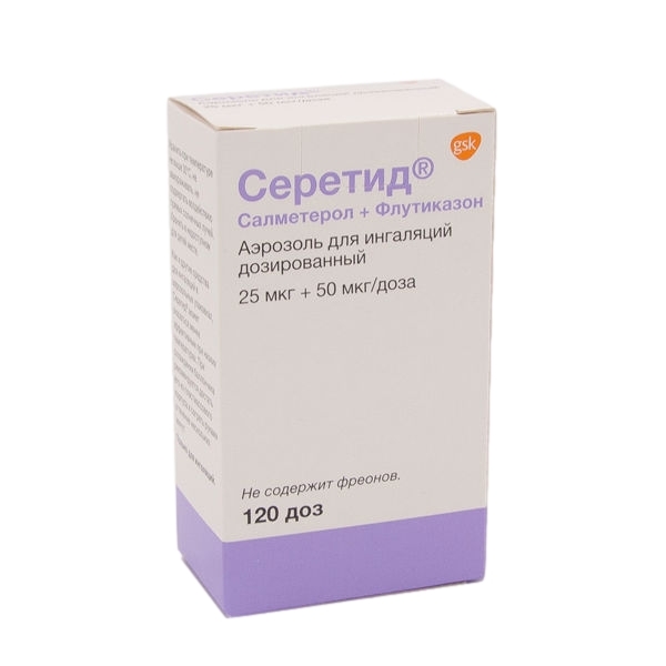 Препарат Серетид® предназначен для регулярного лечения бронхиальной астмы, если показана комбинированная терапия бета2-адреномиметиком длительного действия и ингаляционным ГКС: