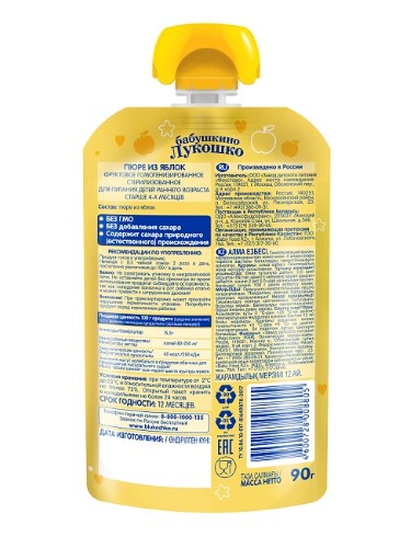 Бабушкино Лукошко пюре из яблок фруктовое гомогенизированное стерилизованное для питания детей раннего возраста