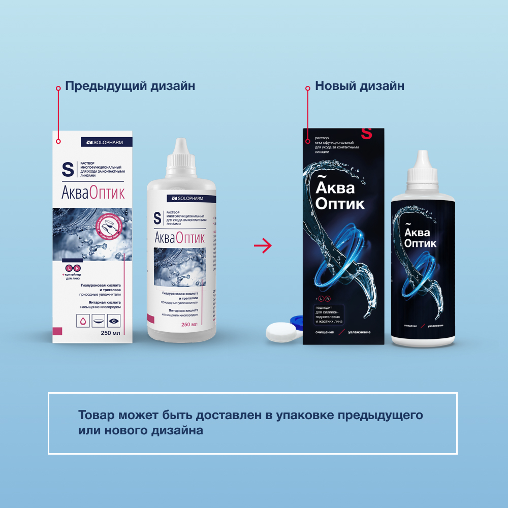Благодаря специальному увлажняющему комплексу, содержащему природный компонент – натрия гиалуронат (гиалуроновая кислота), раствор АкваОптик обеспечивает мягкое скольжение линзы по поверхности роговицы, длительное оптимальное увлажнение и комфорт. Натрия гиалуронат является физиологическим полисахаридным соединением, содержащимся как в тканях глаза, так и в других тканях и жидкостях организма человека. Особым физико-химическим свойством молекул натрия гиалуроната является их выраженная способность связывать молекулы воды. При применении раствора АкваОптик на поверхности линзы образуется тонкая пленка, предохраняющая глаза от пересыхания и раздражения. Действие защитной пленки начинается практически сразу, тем самым глаза надолго защищены от ощущения сухости.