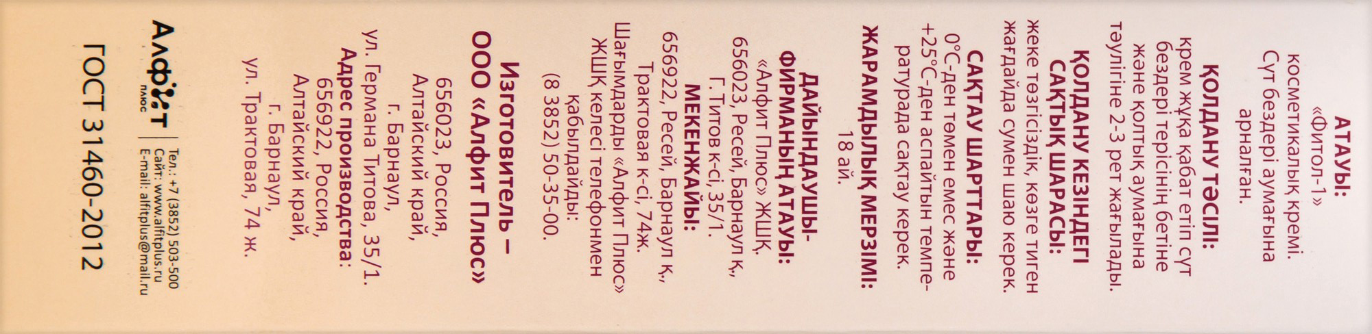 Крем «Фитол-1» изготовлен на основе растительных экстрактов Алтайских трав.