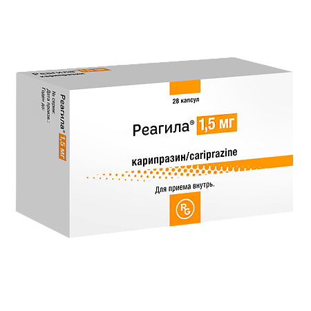 - Особые указанияПрепарат Реагила® следует применять с осторожностью: у пациентов с высоким риском совершения суицида, с акатизией, неусидчивостью, повышенным риском поздней дискинезии, болезнью Паркинсона, нейролептическим злокачественным синдромом в анамнезе, судорогами в анамнезе или состояниями, снижающими порог судорожной готовности, катарактой, у пациентов с факторами риска развития инсульта, сахарного диабета, факторами риска развития гипергликемии, риском ожирения; склонностью к артериальной гипотензии (например, при дегидратации, гиповолемии, при лечении гипотензивными препаратами), сердечно-сосудистыми заболеваниями в анамнезе, риском венозных тромбоэмболических осложнений (см. раздел "Особые указания").<br />Женщины детородного возраста должны применять высокоэффективные меры контрацепции во время приема карипразина и, как минимум, 10 недель после его отмены.<br />Если у Вас имеется одно из перечисленных заболеваний, перед приемом препарата обязательно проконсультируйтесь с врачом.<br />Суицидальные мысли и поведение<br />Суицидальность (суицидальные мысли, попытки суицида и совершённый суицид) возможна на фоне психоза и обычно наблюдается сразу после начала лечения или после перехода с терапии другими антипсихотическими препаратами. В ходе лечения антипсихотическими препаратами пациенты с высоким риском суицида должны находиться под тщательным наблюдением.<br />Акатизия, неусидчивость<br />Акатизия и неусидчивость являются частыми нежелательными реакциями при применении антипсихотических препаратов.<br />Акатизия - это двигательное расстройство, характеризующееся чувством внутреннего беспокойства и потребностью находиться в постоянном движении, а также такими действиями, как раскачивание корпуса в положении стоя или сидя, поднимание ног, имитирующее ходьбу на месте, и скрещивание-раскрещивание ног в положении сидя.<br />Так как карипразин может вызвать акатизию и неусидчивость, его следует применять с осторожностью у пациентов, у которых уже наблюдались симптомы акатизии или есть предрасположенность к ней. Акатизия развивается в начале лечения. Следовательно, важно проводить тщательное наблюдение за пациентами в первой фазе лечения.<br />Профилактика включает постепенное увеличение дозы; лечебные мероприятия включают небольшое снижение дозы карипразина или применение препаратов для купирования ЭПС. Доза препарата может быть скорректирована в зависимости от индивидуального ответа пациента на лечение и переносимости (см. раздел "Побочное действие").<br />Поздняя дискинезия<br />Поздняя дискинезия - синдром, включающий в себя потенциально необратимые, ритмичные, непроизвольные движения, главным образом, языка и/или лица, которые могут возникать у пациентов, получающих антипсихотические препараты. При появлении признаков и симптомов поздней дискинезии у пациента, принимающего карипразин, следует рассмотреть целесообразность отмены препарата.<br />Болезнь Паркинсона<br />При применении у пациентов с болезнью Паркинсона антипсихотические лекарственные препараты могут вызывать обострения фонового заболевания и приводить к усилению симптомов болезни Паркинсона. Следовательно, назначая карипразин пациентам с болезнью Паркинсона, врач должен тщательно взвесить пользу и риски.<br />Глазные симптомы/ката