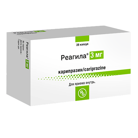 - Особые указанияПрепарат Реагила® следует применять с осторожностью: у пациентов с высоким риском совершения суицида, с акатизией, неусидчивостью, повышенным риском поздней дискинезии, болезнью Паркинсона, нейролептическим злокачественным синдромом в анамнезе, судорогами в анамнезе или состояниями, снижающими порог судорожной готовности, катарактой, у пациентов с факторами риска развития инсульта, сахарного диабета, факторами риска развития гипергликемии, риском ожирения; склонностью к артериальной гипотензии (например, при дегидратации, гиповолемии, при лечении гипотензивными препаратами), сердечно-сосудистыми заболеваниями в анамнезе, риском венозных тромбоэмболических осложнений (см. раздел "Особые указания").<br />Женщины детородного возраста должны применять высокоэффективные меры контрацепции во время приема карипразина и, как минимум, 10 недель после его отмены.<br />Если у Вас имеется одно из перечисленных заболеваний, перед приемом препарата обязательно проконсультируйтесь с врачом.<br />Суицидальные мысли и поведение<br />Суицидальность (суицидальные мысли, попытки суицида и совершённый суицид) возможна на фоне психоза и обычно наблюдается сразу после начала лечения или после перехода с терапии другими антипсихотическими препаратами. В ходе лечения антипсихотическими препаратами пациенты с высоким риском суицида должны находиться под тщательным наблюдением.<br />Акатизия, неусидчивость<br />Акатизия и неусидчивость являются частыми нежелательными реакциями при применении антипсихотических препаратов.<br />Акатизия - это двигательное расстройство, характеризующееся чувством внутреннего беспокойства и потребностью находиться в постоянном движении, а также такими действиями, как раскачивание корпуса в положении стоя или сидя, поднимание ног, имитирующее ходьбу на месте, и скрещивание-раскрещивание ног в положении сидя.<br />Так как карипразин может вызвать акатизию и неусидчивость, его следует применять с осторожностью у пациентов, у которых уже наблюдались симптомы акатизии или есть предрасположенность к ней. Акатизия развивается в начале лечения. Следовательно, важно проводить тщательное наблюдение за пациентами в первой фазе лечения.<br />Профилактика включает постепенное увеличение дозы; лечебные мероприятия включают небольшое снижение дозы карипразина или применение препаратов для купирования ЭПС. Доза препарата может быть скорректирована в зависимости от индивидуального ответа пациента на лечение и переносимости (см. раздел "Побочное действие").<br />Поздняя дискинезия<br />Поздняя дискинезия - синдром, включающий в себя потенциально необратимые, ритмичные, непроизвольные движения, главным образом, языка и/или лица, которые могут возникать у пациентов, получающих антипсихотические препараты. При появлении признаков и симптомов поздней дискинезии у пациента, принимающего карипразин, следует рассмотреть целесообразность отмены препарата.<br />Болезнь Паркинсона<br />При применении у пациентов с болезнью Паркинсона антипсихотические лекарственные препараты могут вызывать обострения фонового заболевания и приводить к усилению симптомов болезни Паркинсона. Следовательно, назначая карипразин пациентам с болезнью Паркинсона, врач должен тщательно взвесить пользу и риски.<br />Глазные симптомы/ката