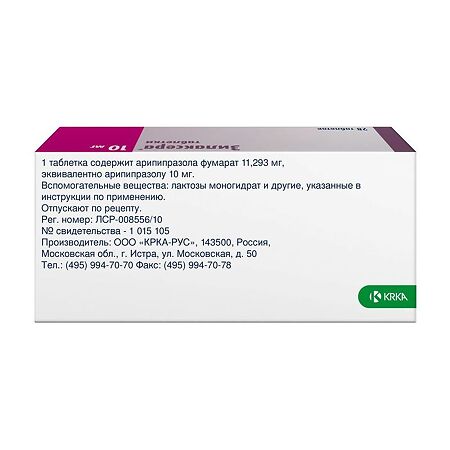 - Влияние на способность управлять транспортом и механизмамиПри применении препарата Зилаксера следует соблюдать осторожность до тех пор, пока пациенты не удостоверятся, что арипипразол не оказывает на них негативного влияния.